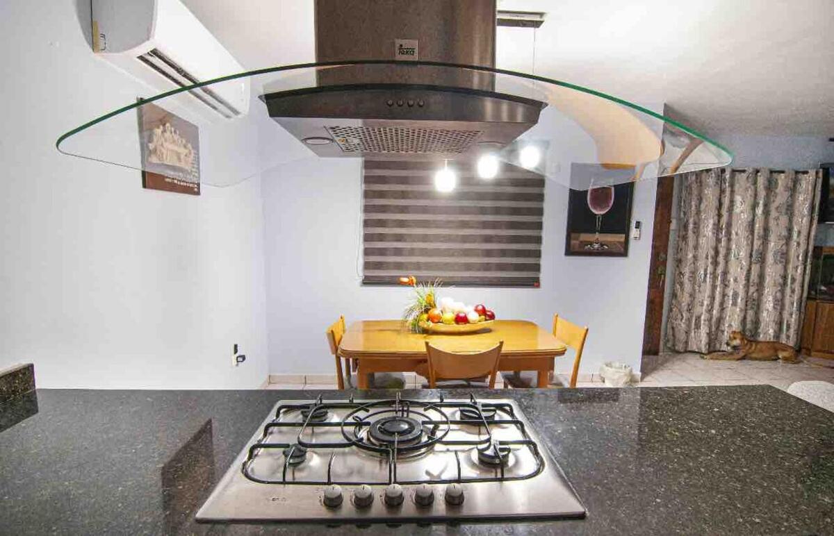 Three-Bedroom House. A kitchen fitted with kitchenware, a microwave and a toaster is available for cooking and storing food. The air-conditioned holiday home features a flat-screen TV, a washing machine, a coffee machine, a dining area as well as garden views. The unit has 1 bed.